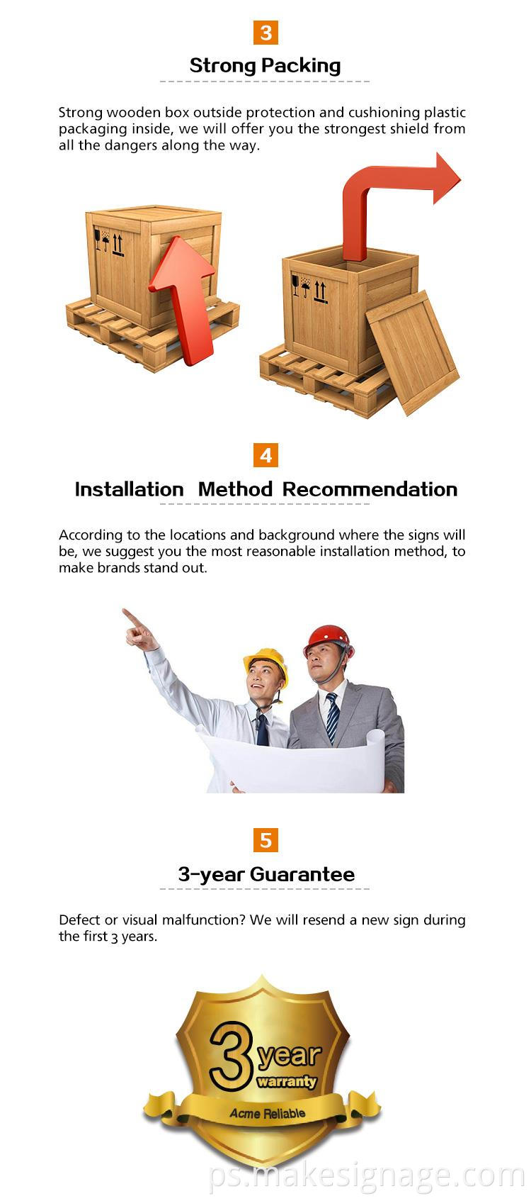 مخکښ او شاتړ د چینل لیک د پراخه خط لاسلیک غوښتنلیکونو لپاره ډیزاین شوي. د پرچون مرکزونو، مسلکي سوداګرۍ، او میلمه پالنې لپاره مثالی. موږ ترټولو مسلکي ټیم لرو چې د ټیکنالوژۍ لپاره ستاسو مختلف غوښتنې پوره کولو لپاره. عالي ویلډینګ او بې ارزښته پالونکي د تورو لوړ کیفیت تضمین کوي. اکریلیک دواړه په مخ او شا کې. د ډیرې توجه راجلب کول او د لوړې پای لید رامینځته کول. که چیرې د رهبري شوي خطونو روښانه ودانۍ، وینډوز یا چتپپونه، دا لیکونه به د کلونو لپاره په روښانه ډول روښانه شي.